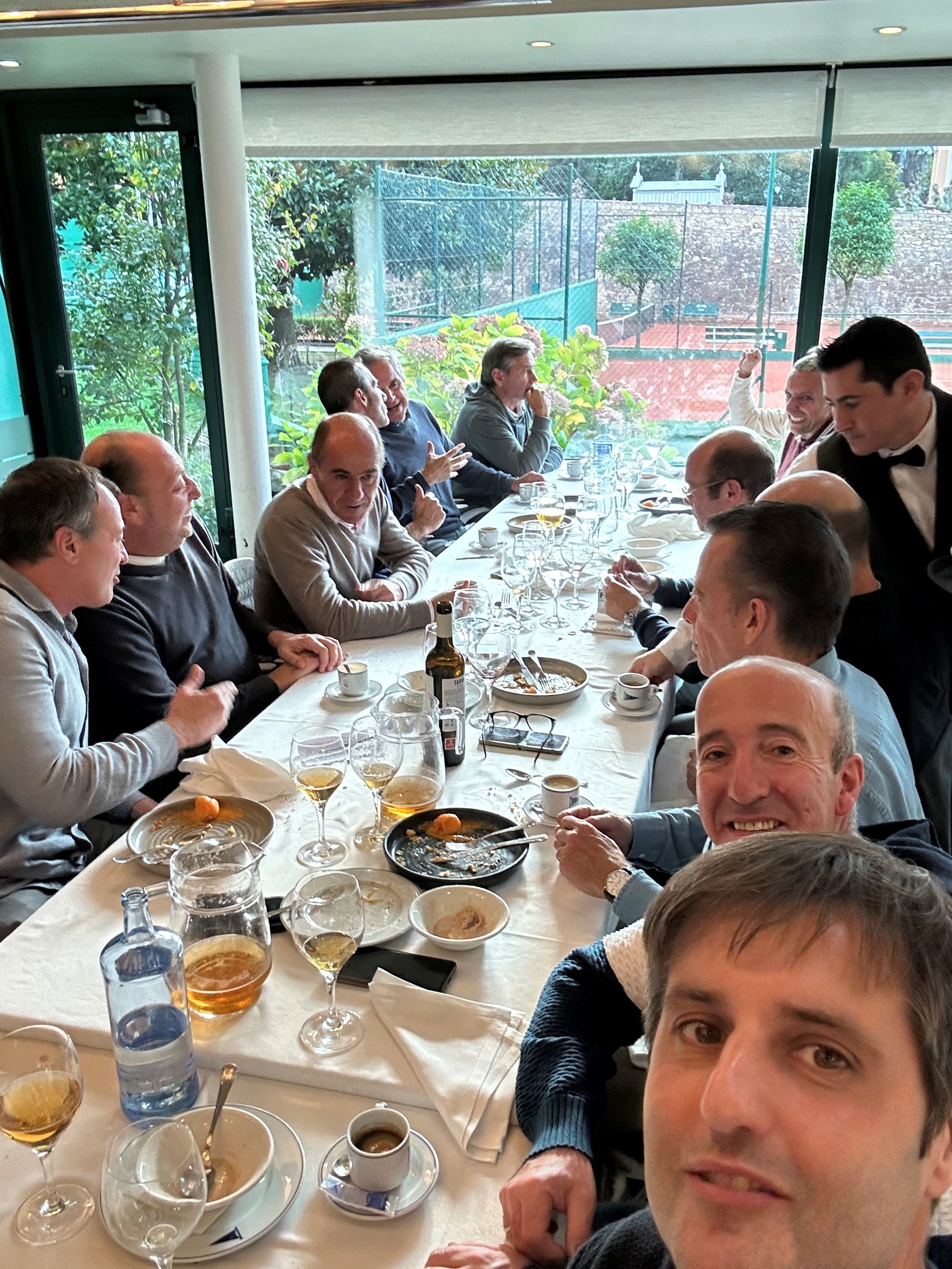 Como siempre, tras la tensión acumulada, reinó la camaradería entre los jugadores y aficionados de ambos clubes. Muestra de ello es esta imagen de todo el grupo compartiendo comida y anécdotas: